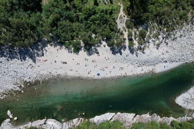 La spiaggia si trova proprio nella zona di confluenza del fiume Maggia con il fiume Melezza.